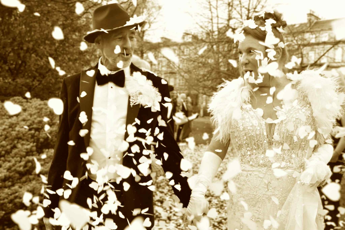 GILLIAN AND ALLAN RETRO STYLE CONFETTI SHOT